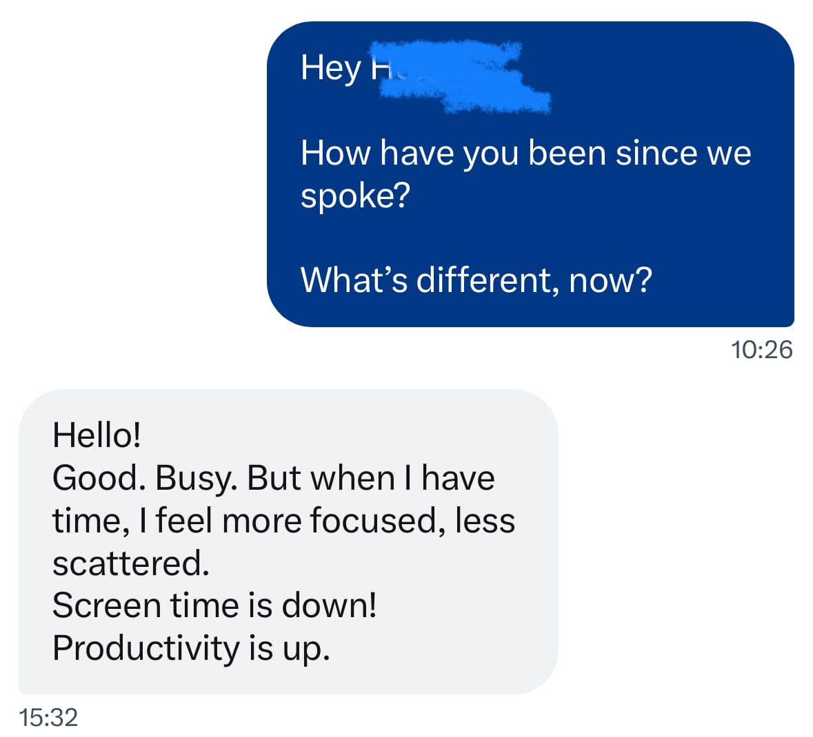 A few days later, he wrote to me. Productive. Aligned. Awake.